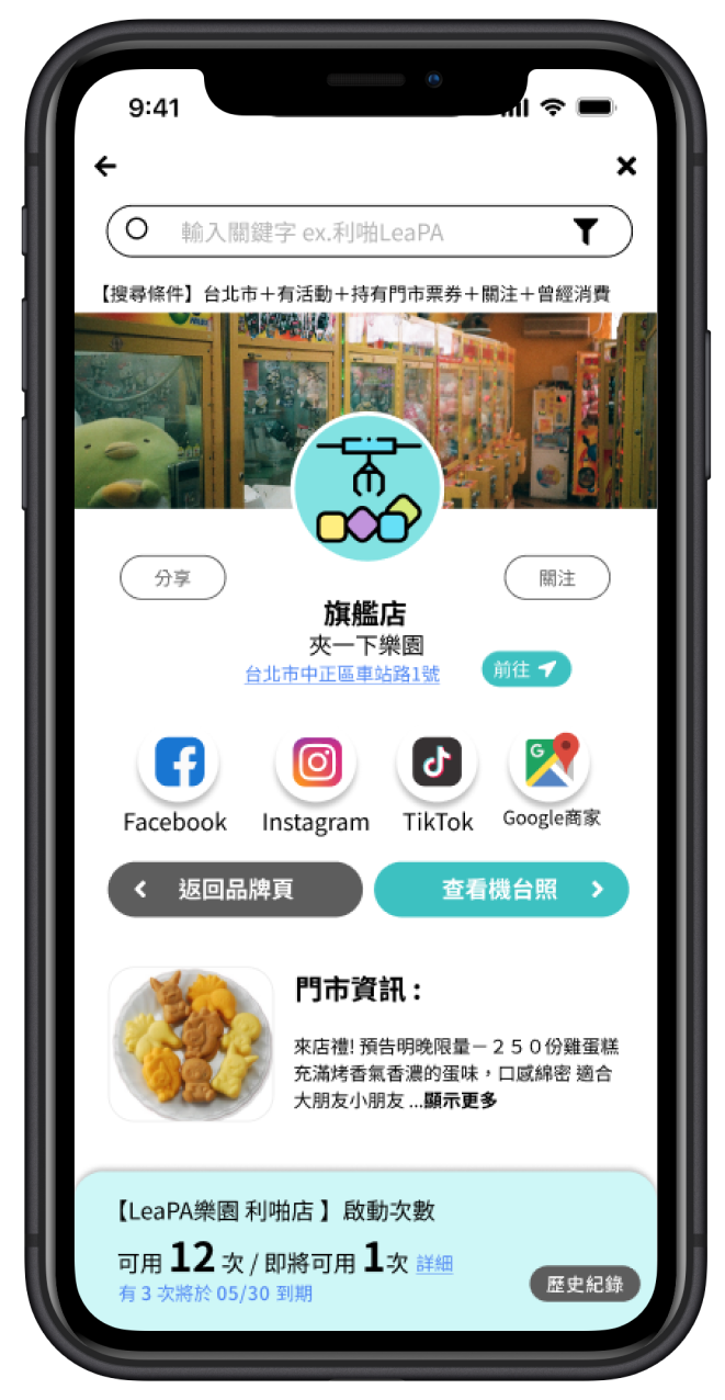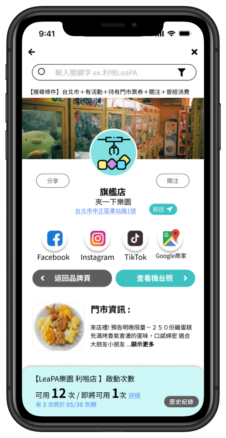 店家資訊與紛絲團連結快速掌握最新資訊。
